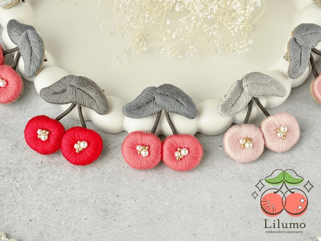 ふっくらとした刺繍のぬくもりに、そっと和を紡いだ大人の「かわいい」アクセサリー。装いに彩りをひとつ。