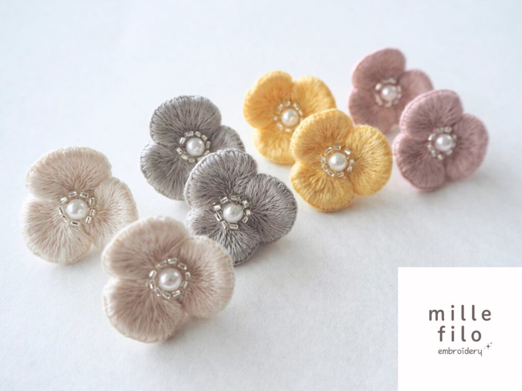 millefiloでは手刺繍のやさしい質感とほんのりとした色合いで、毎日にそっとときめきを添えるアクセサリーをお届けしています⟡.*