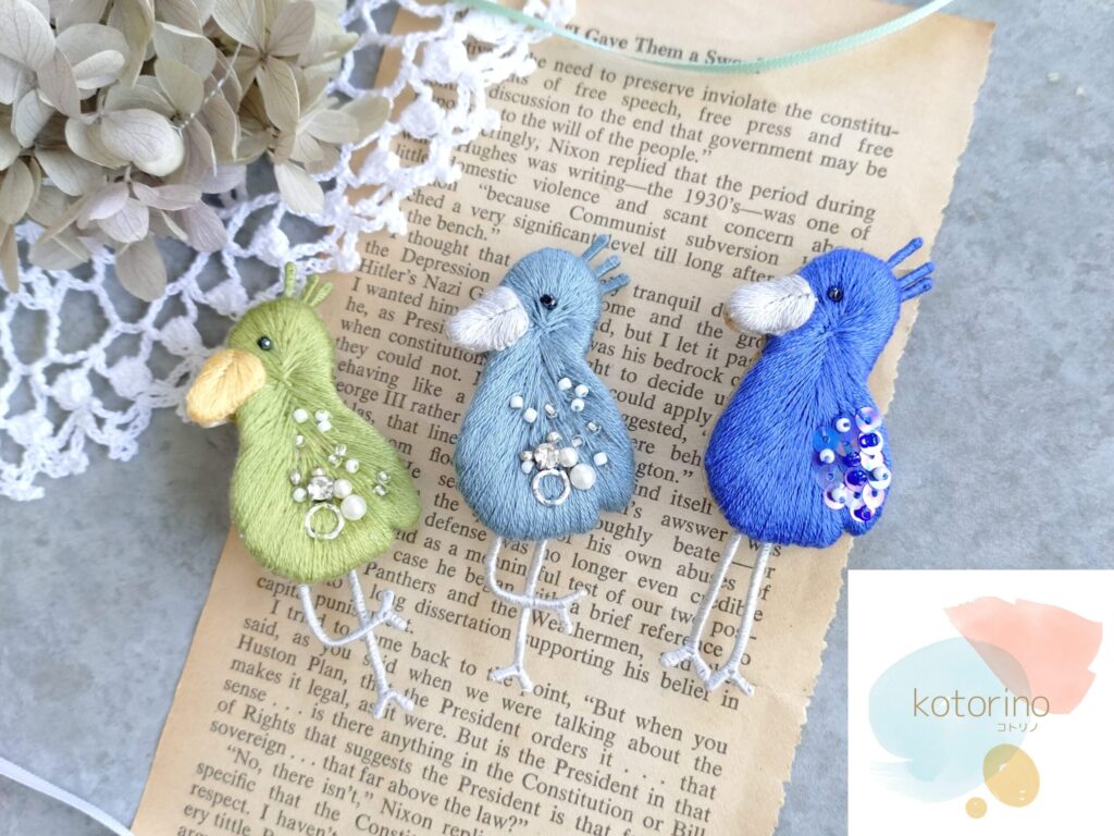 初めまして、コトリノです。ハシビロコウ、白鳥など「コトリ」のモチーフを中心に日々を彩るブローチを丁寧に制作しています。