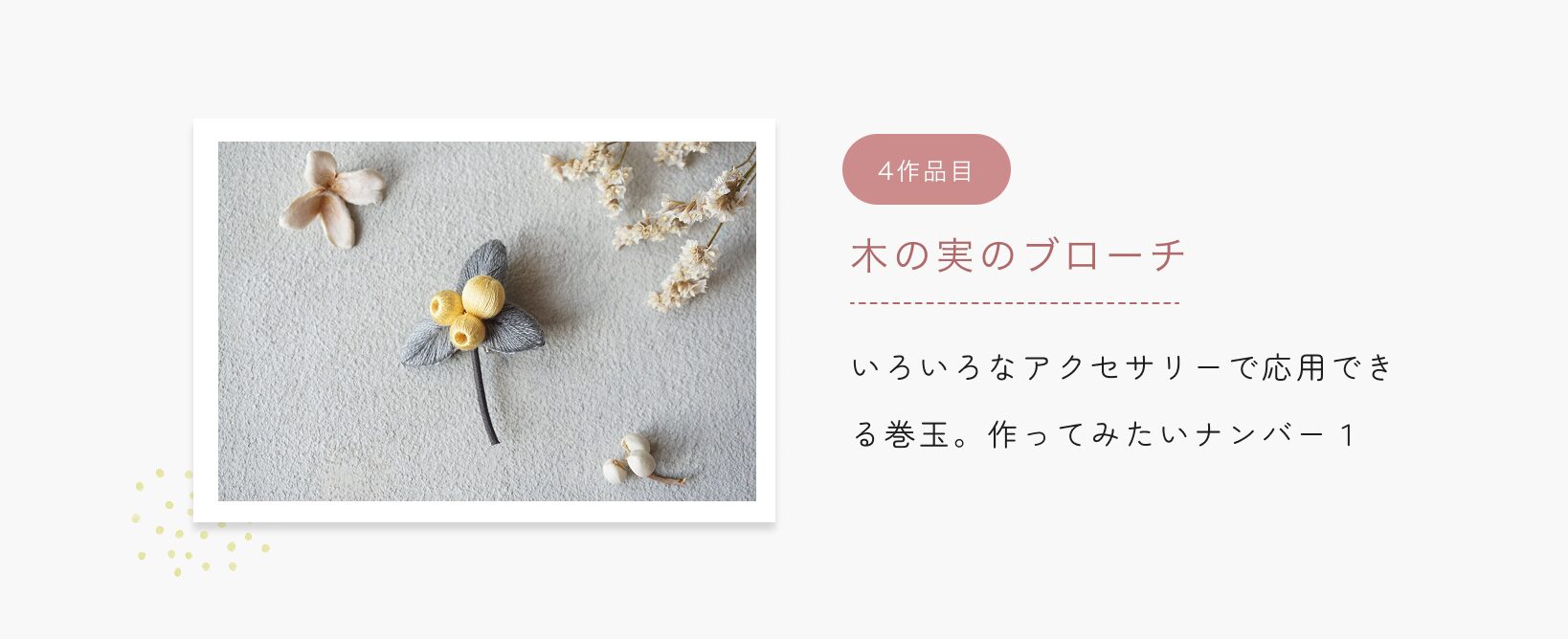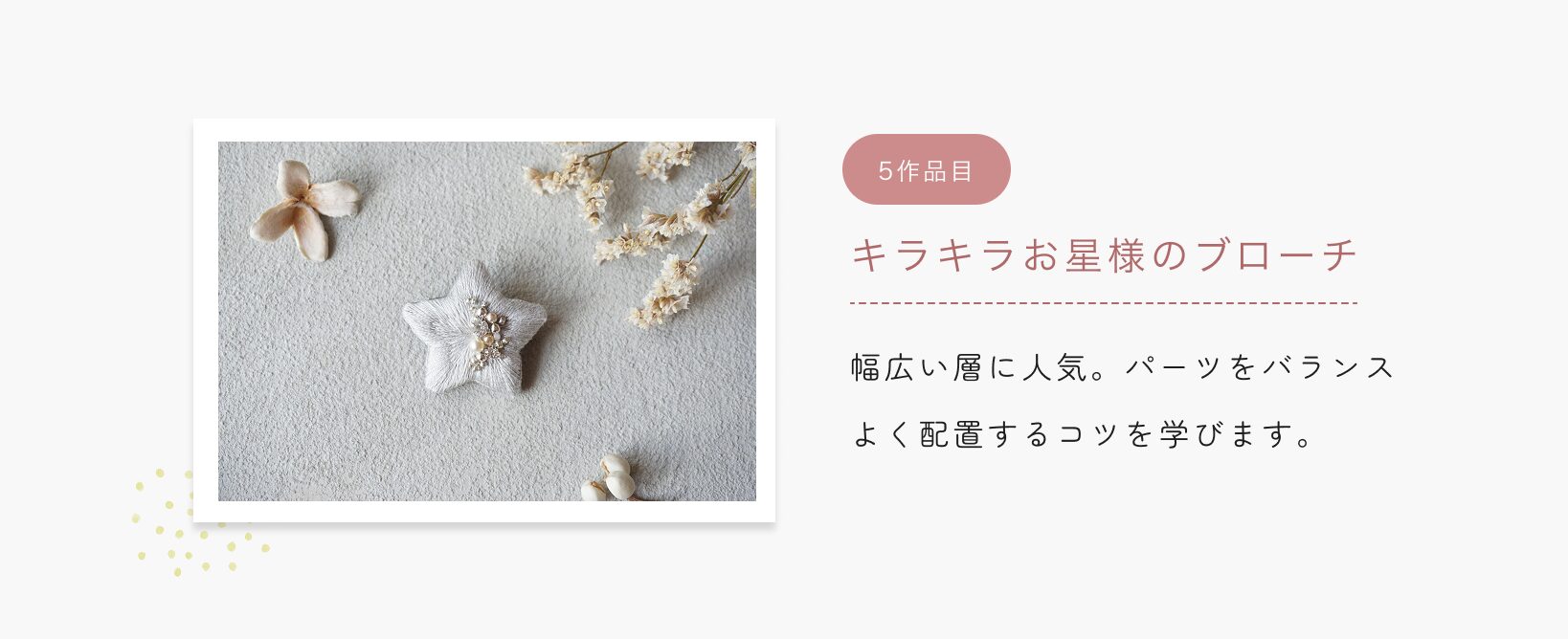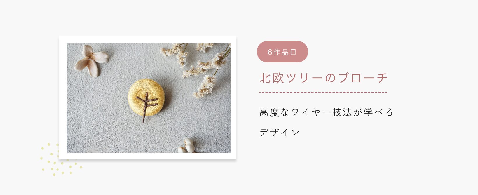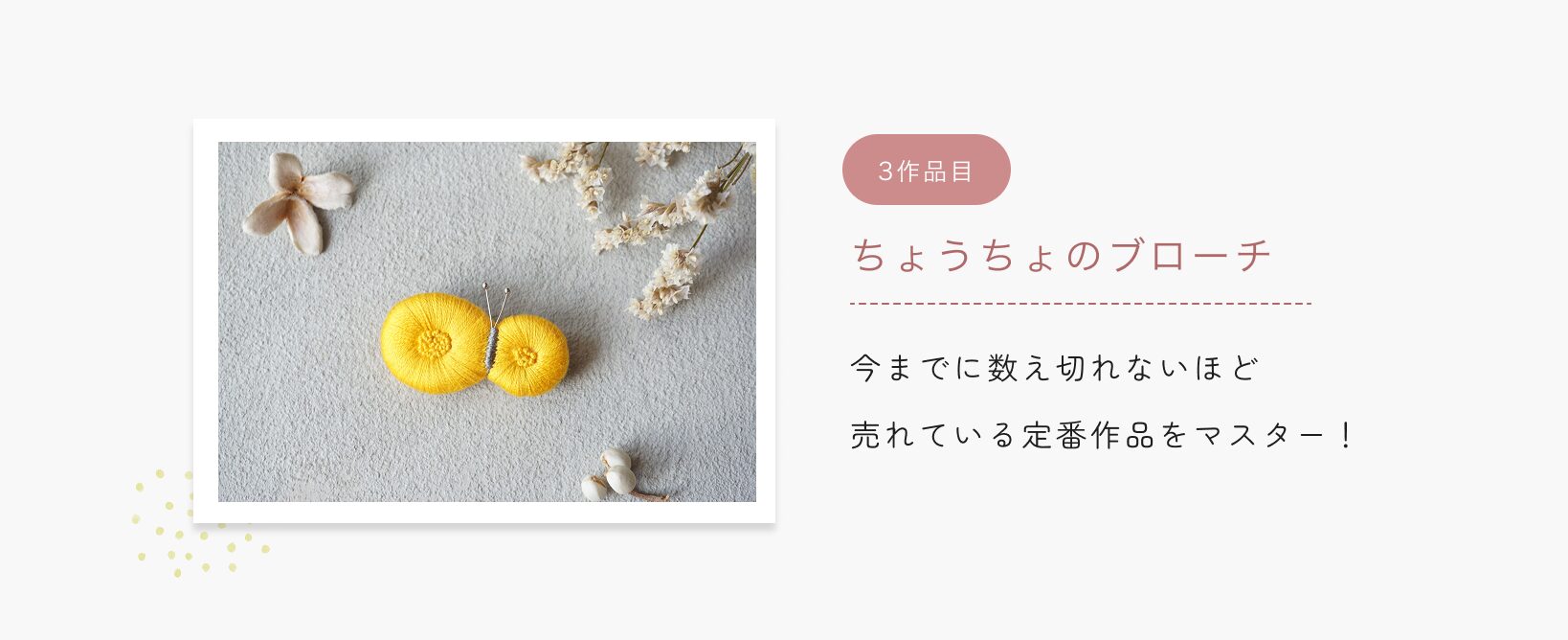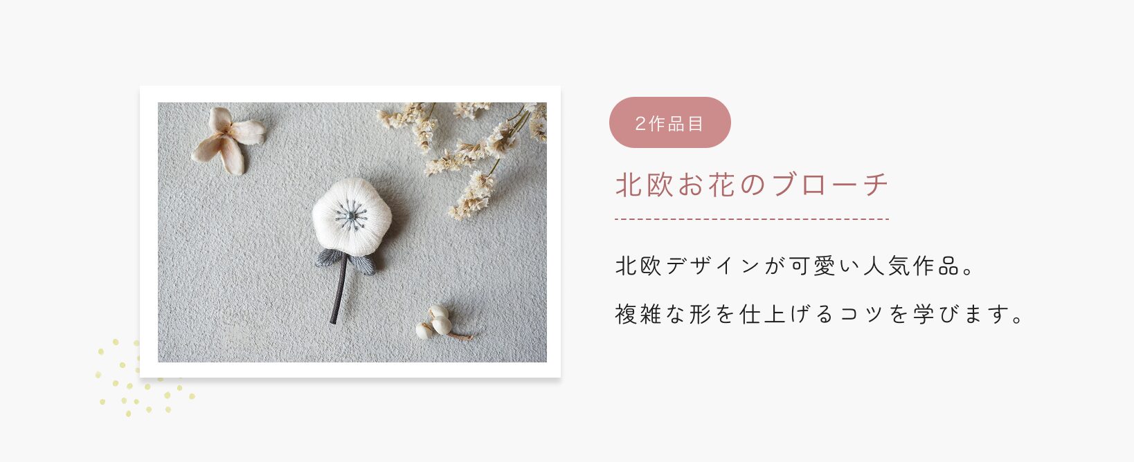 ふっくら立体刺繍の基礎技術をkukkaの人気6作品の制作を通じて学びます。