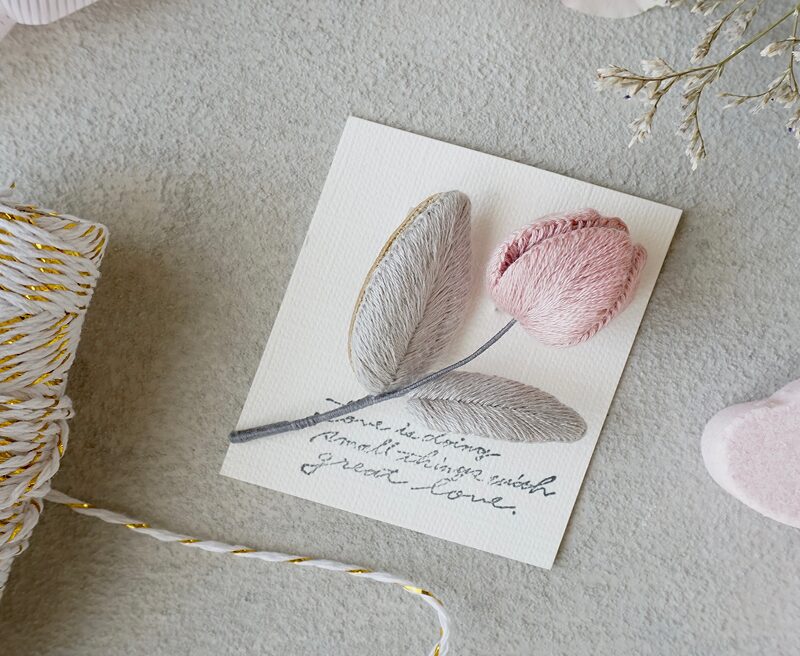 刺繍枠や高価な材料がなくても大丈夫。 少ない道具と糸だけで楽しめるから、気軽に始められるのが魅力です。