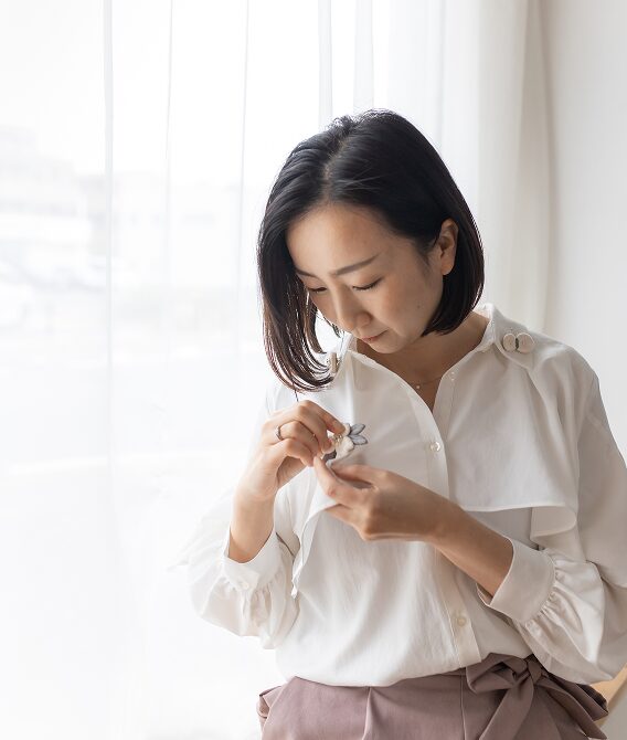 出産を期に、刺繍制作をスタート。ふっくら立体刺繍を考案。その後一般向けキット販売、オンライン講座を開講し、刺繍技術だけでなく、色彩・世界観づくり・写真の撮り方まで、これまでの経験を活かした「選ばれる表現」を伝えている。